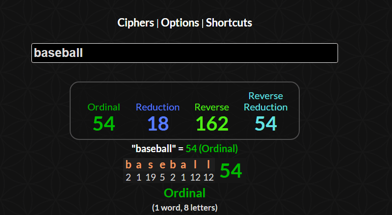 The Gematria of “baseball” is one of my favourites for introducing beginners to the subject.